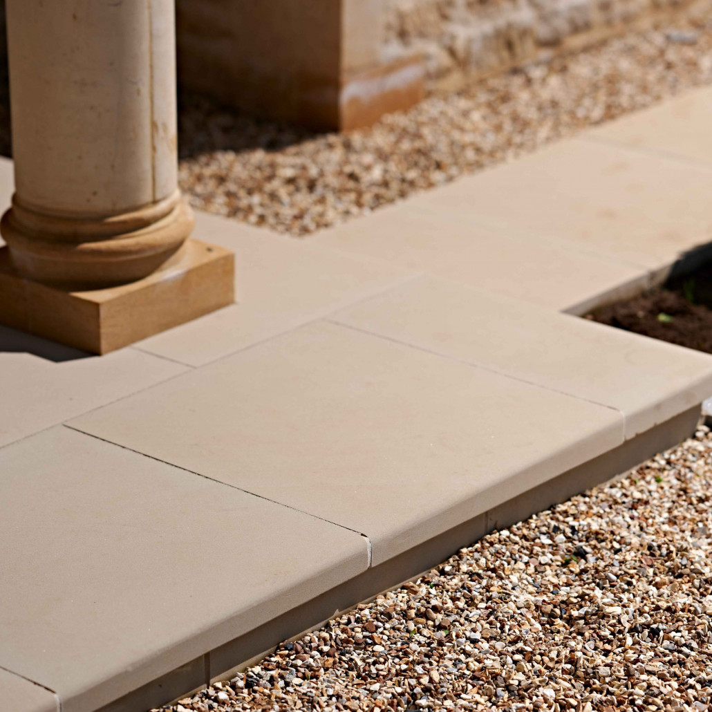 Sandstone paving provides a continuous finish around the property and complements the beautiful landscaping. The front entrance paving has a bullnose edge for a softer finish.